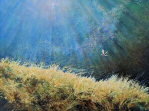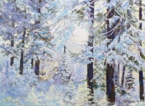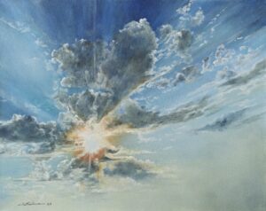 Joan’s work is representational in nature and includes a wide range of subjects. Life took an abrupt turn at age 22 after a skydiving accident while practicing for regional competition left her partially paralyzed. The active outdoor lifestyle changed in intensity, but she continues to pursue outdoor activities with husband Larry and with the aid of crutches and braces. Joan keeps a backpack of art supplies for Plein Aire outings which keeps her in the outdoors where she loves to be.